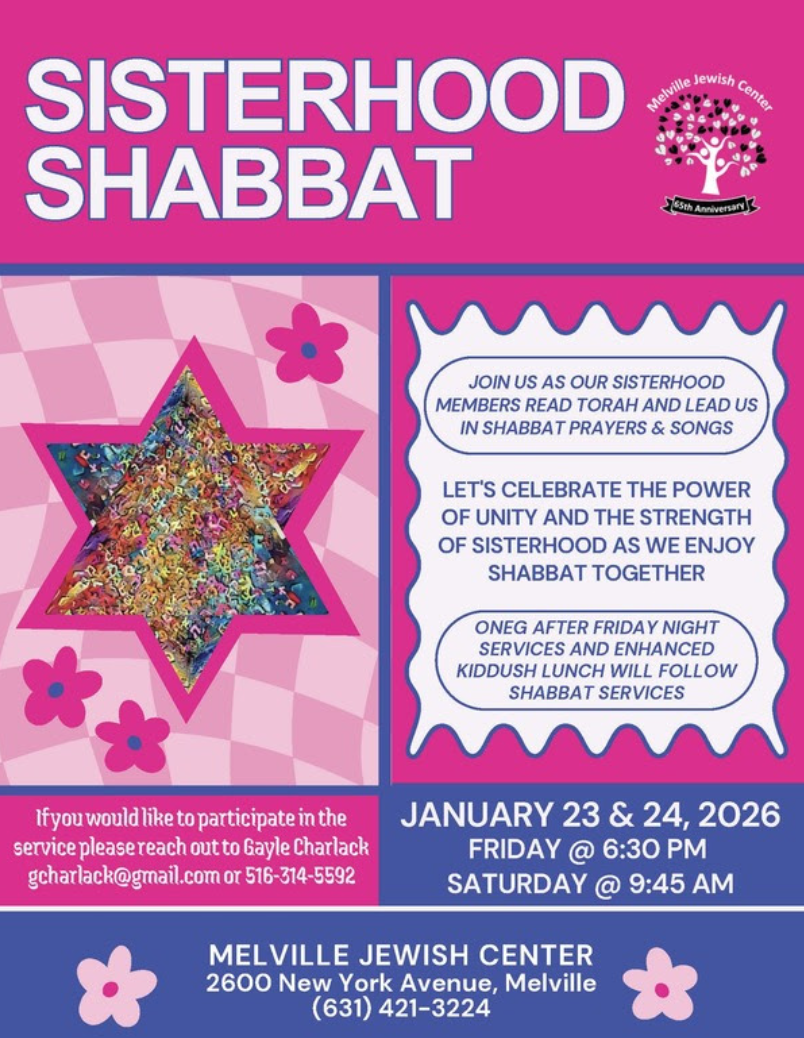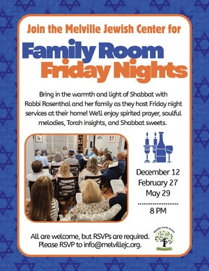 Welcome to Melville Jewish Center, an inclusive Conservative congregation. Here you will find a blend of traditional and progressive aspects of Judaism, engaging services and inspiring holiday celebrations, a deep connection to one another, and a commitment to Tikkun Olam (repairing the world). Together we joyously strengthen our Jewish bonds. We invite you to visit us and participate in our programs. We want to be the place you want to go!